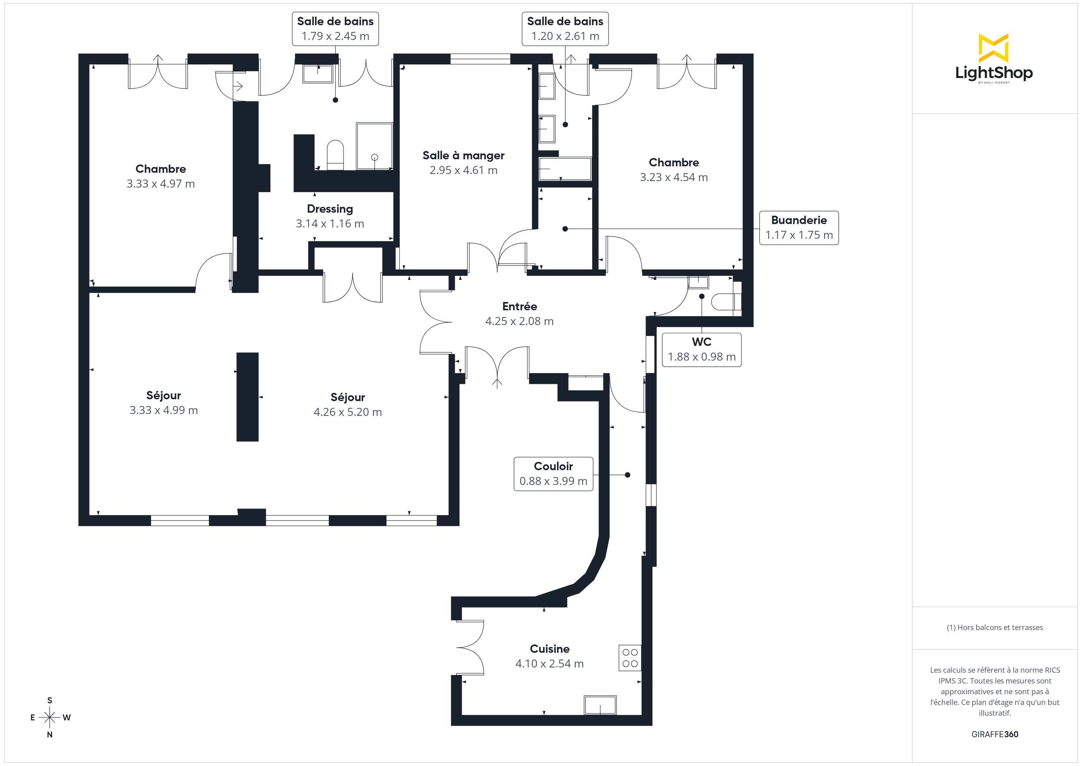 La troisième chambre, actuellement utilisée comme salle à manger, bénéficie d’une buanderie attenante, facilement transformable en salle d’eau, permettant ainsi d’envisager l’aménagement de trois suites avec pièce d’eau privative.