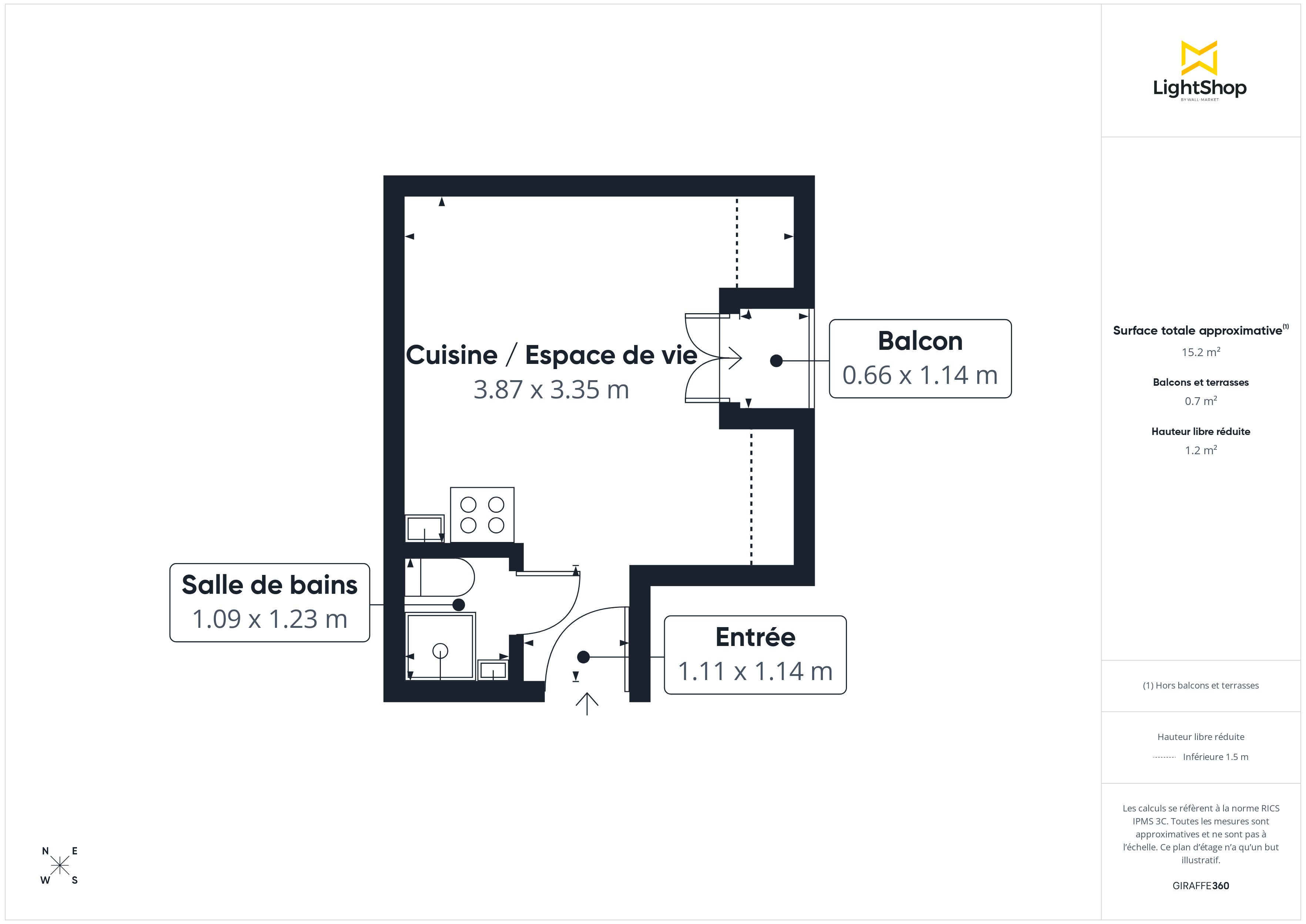 L’agencement intérieur comprend une entrée desservant une pièce principale avec une cuisine ouverte, ainsi qu'une salle d'eau équipée de wc (sanibroyeurs), des wc de palier (entièrement rénové) sont également disponibles.