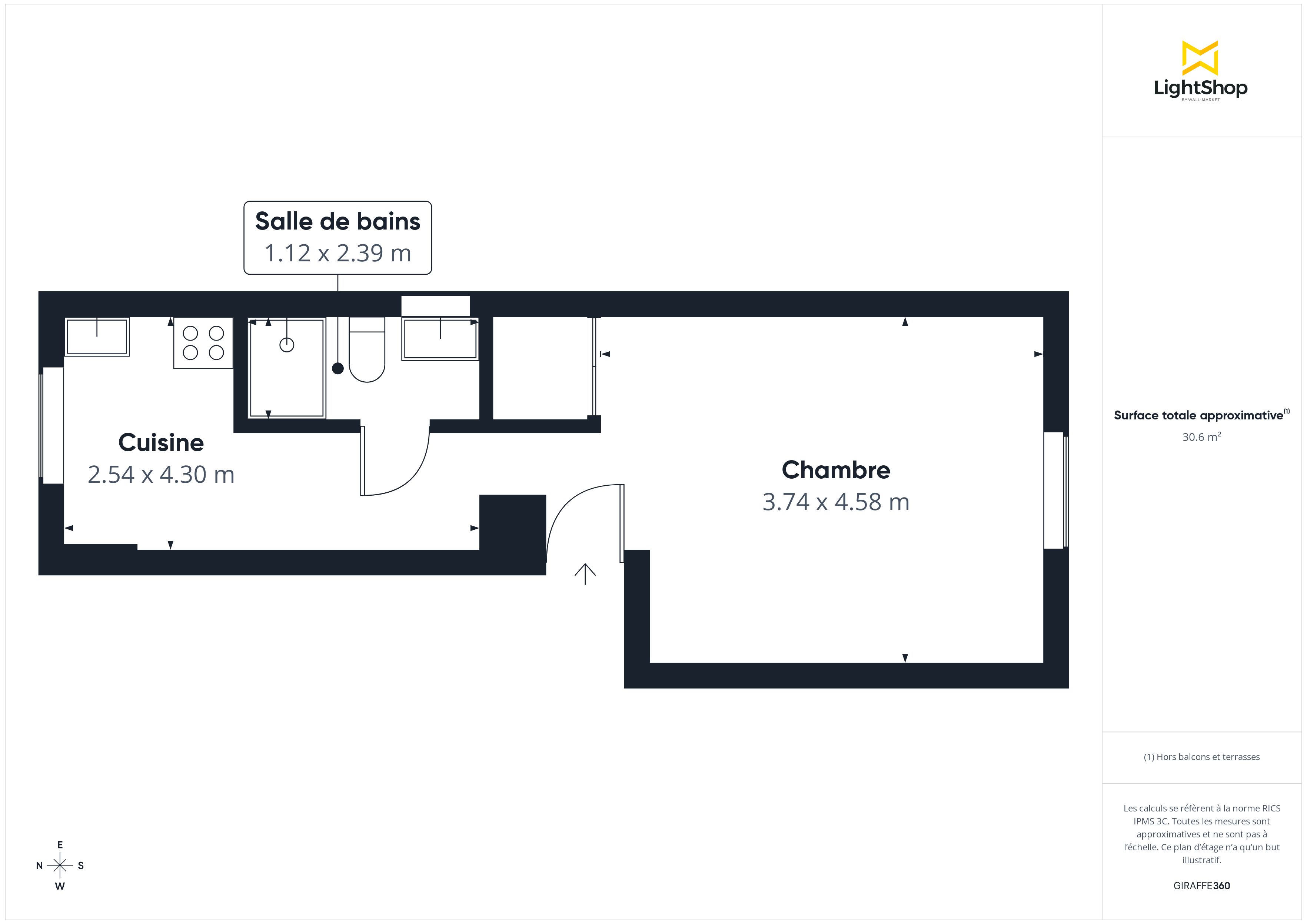 L'agencement de cet appartement comprend une salle de bain avec toilettes et l'ensemble des fenêtres sont en double vitrage.