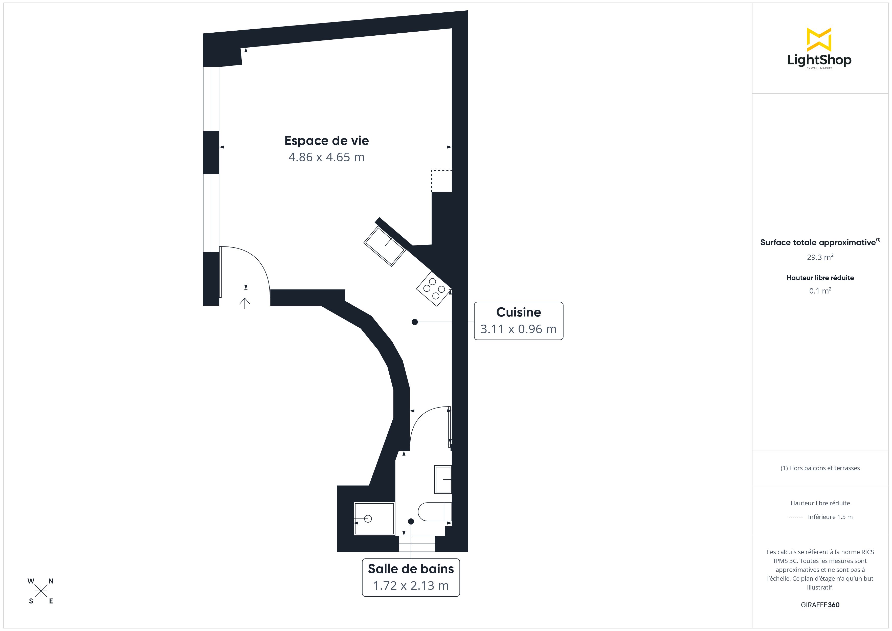 Rue Drouot, Paris - Une pièce - 29.0 m² - 1 chambre