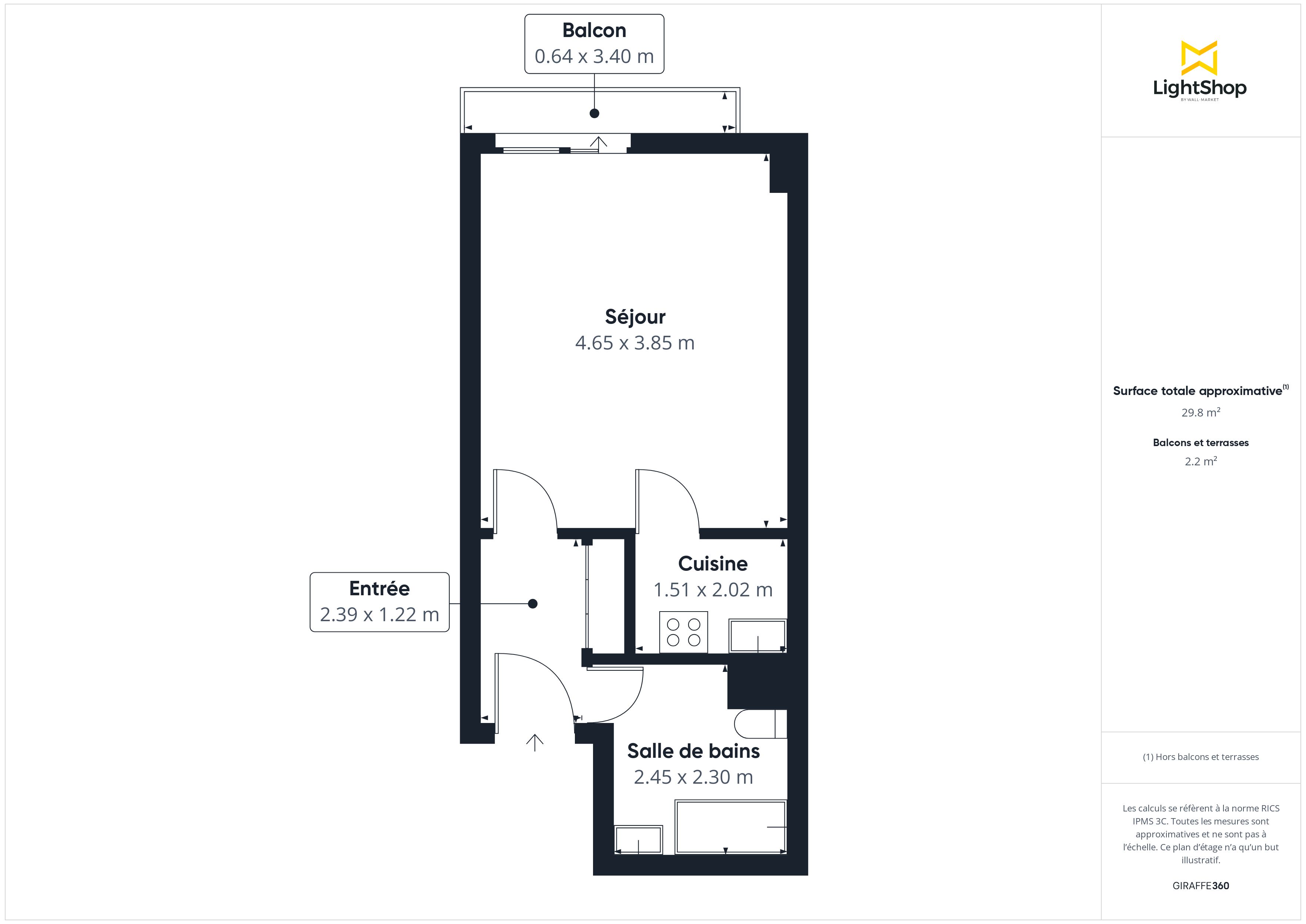 Rue Achille Martinet, Paris - Une pièce - 31.0 m² - 1 chambre