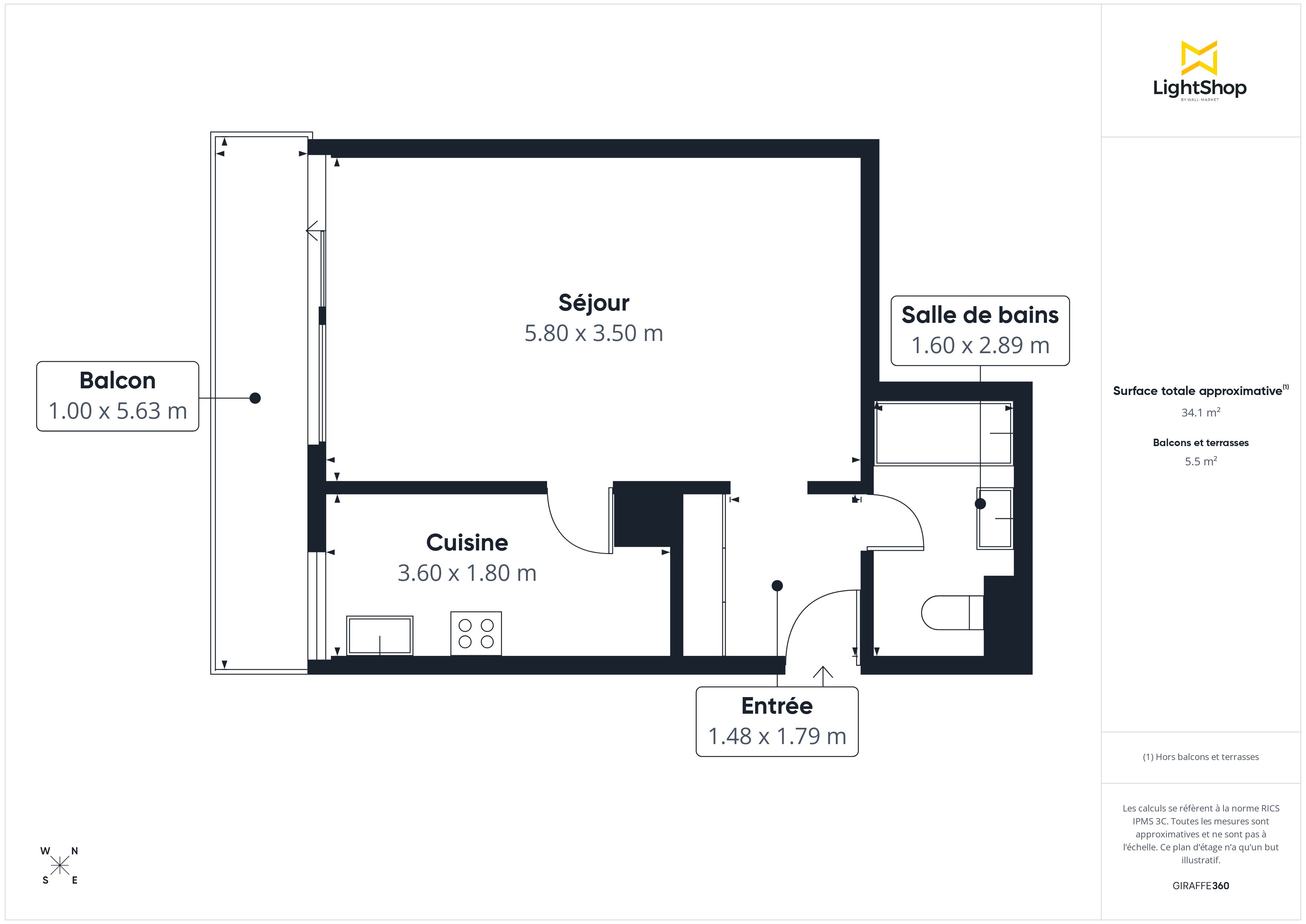 Le bien s'ouvre sur une entrée menant à une pièce principale de 21 m2 qui dispose d'un accès direct au balcon de 5 m2. La cuisine est équipée. Une salle de bain, équipée d'une baignoire et de toilettes, complète ce logement.
