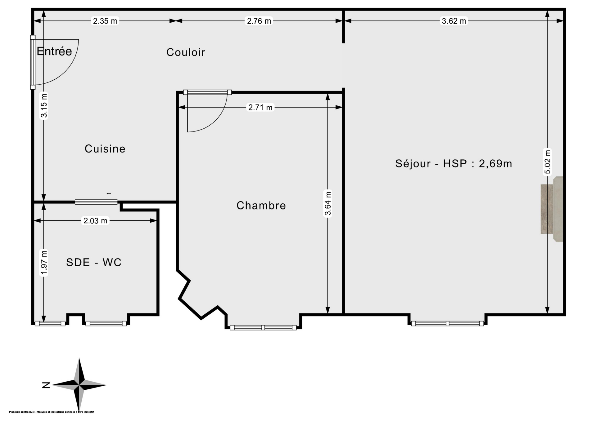 - Une salle d'eau, équipée d'une douche à l'italienne, d'une vasque simple, d'un sèche-serviette et d'un WC, est dotée de deux fenêtres et d'un système de ventilation VMC.