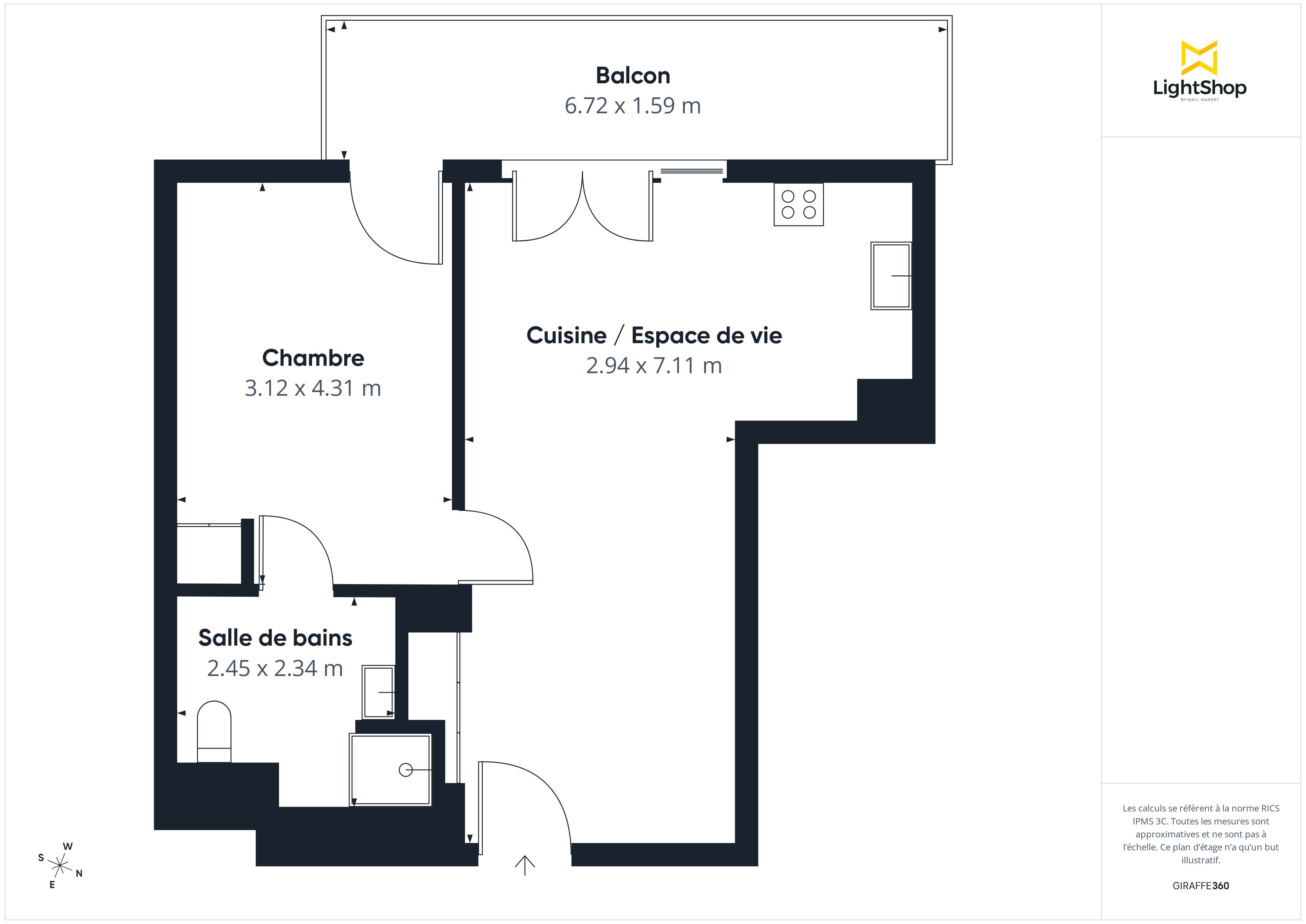 Une pièce de vie spacieuse de 27 m² avec cuisine ouverte, idéale pour recevoir ou aménager un espace de télétravail