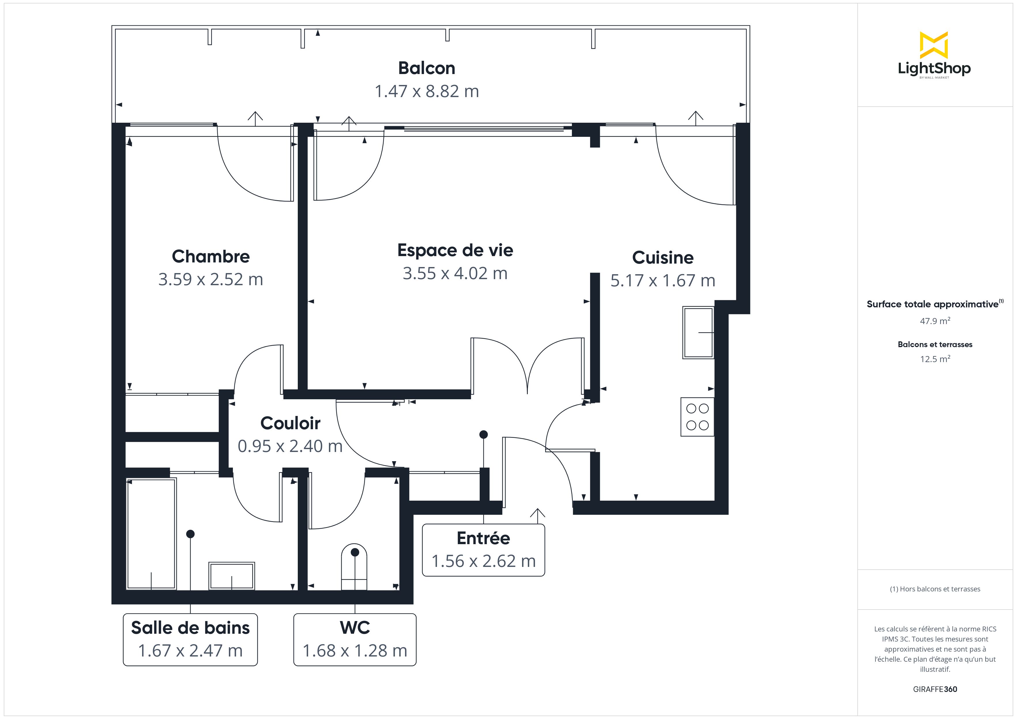 Rue Frédéric Sévène, Talence - 2 pièces - 48.69 m² - 1 chambre