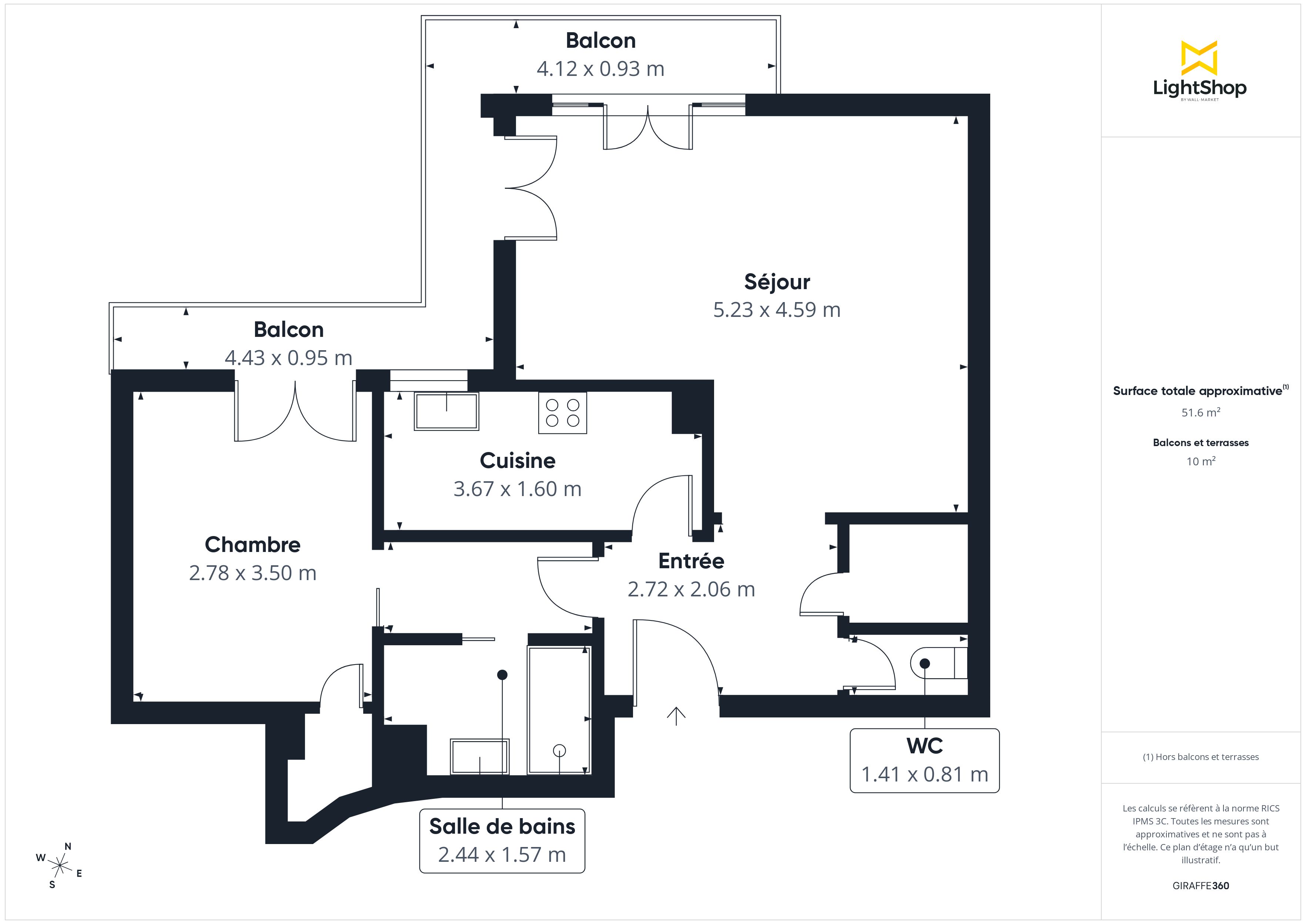 - d'un séjour et d'un espace salle à manger de 21 m² avec accès à un balcon de 4m² et d'une magnifique vue sur la tour Eiffel