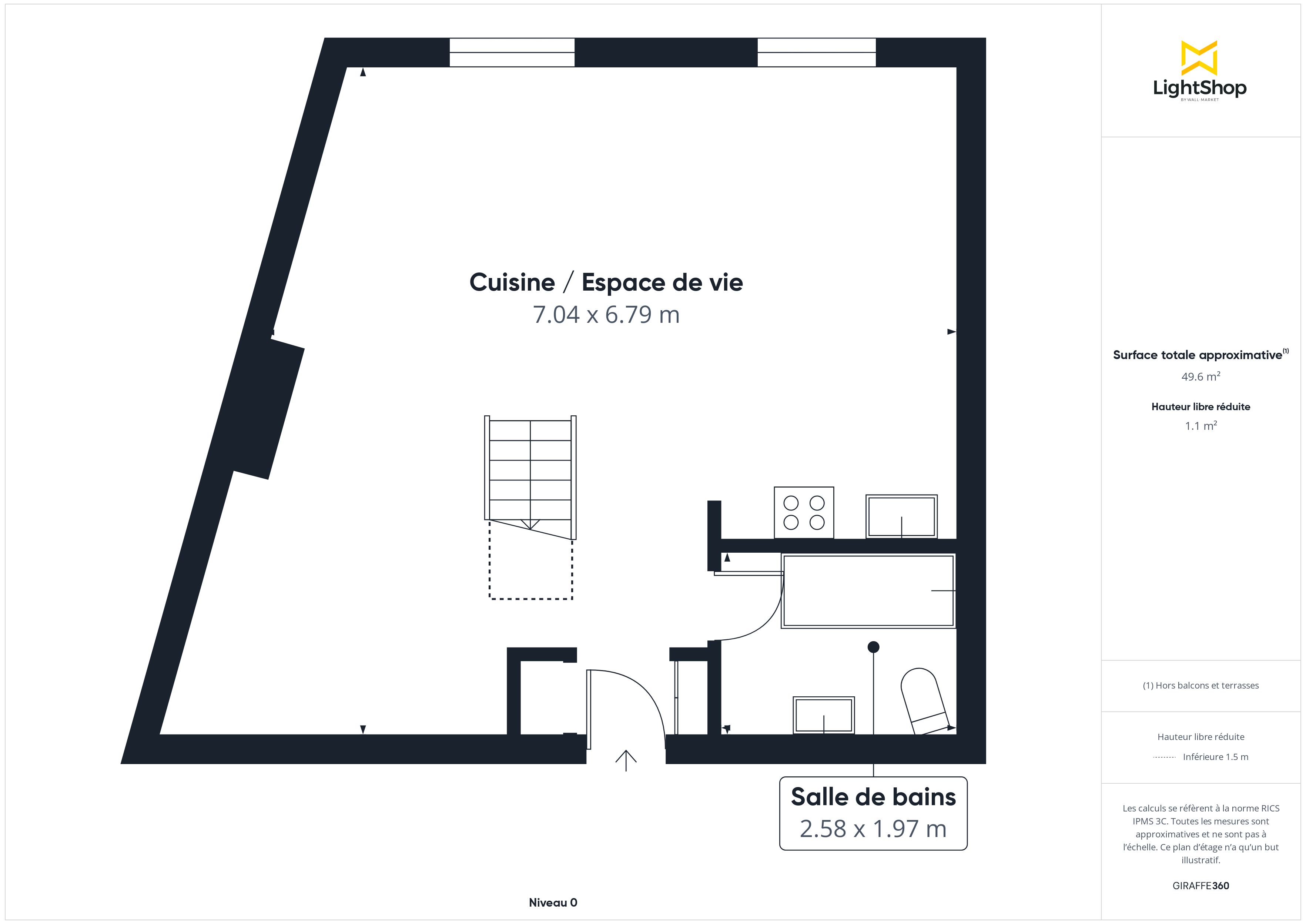 Possibilité de créer une chambre sous la mezzanine avec puit de lumière.