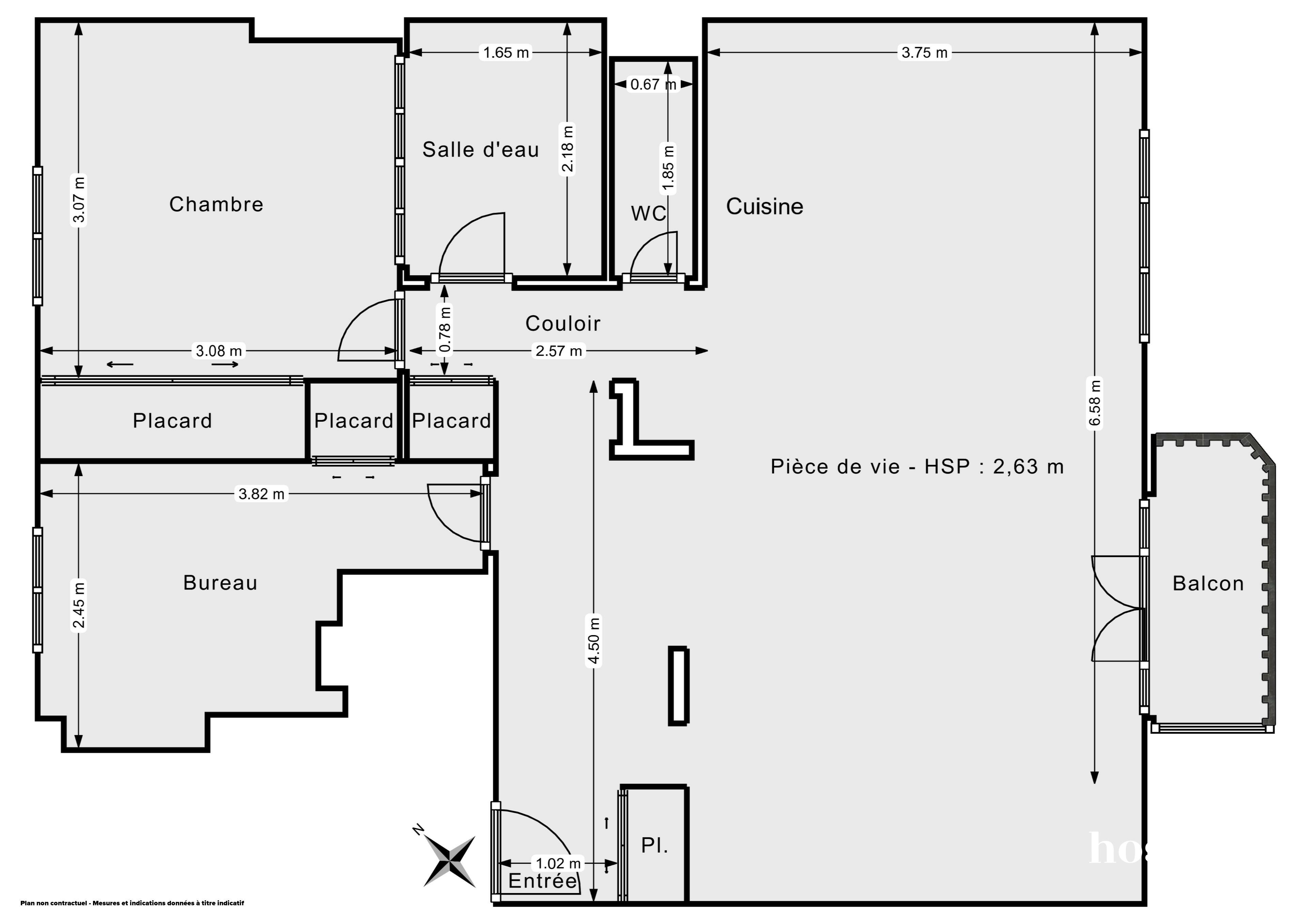 Hosman vous propose à la vente ce magnifique 3 pièces d'une surface de 63 m² avec balcon, situé rue de la Charbonnière à Paris.