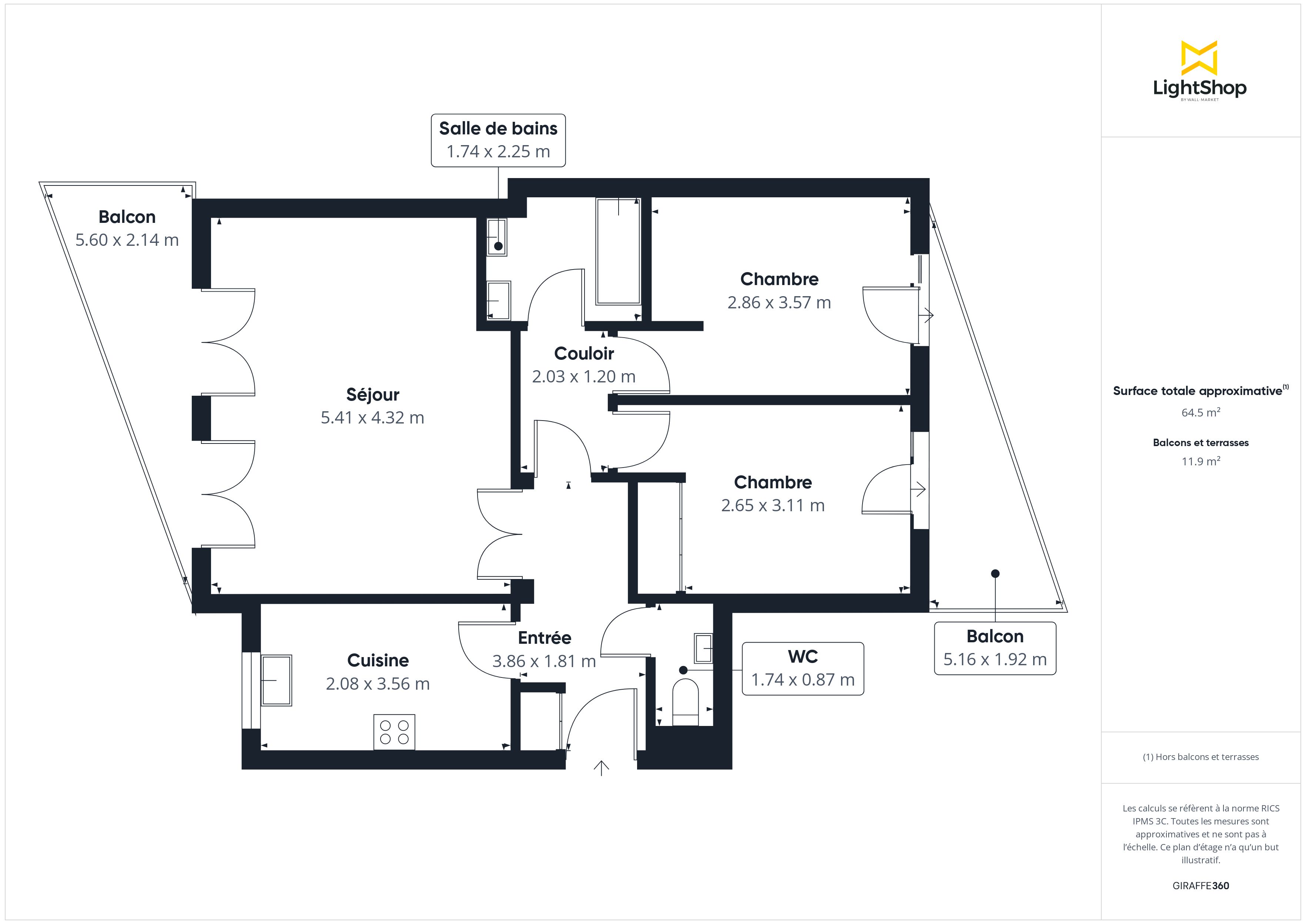 - D'un double séjour spacieux de 22,7m2 et fonctionnel qui donne accès à un balcon d'environ 7 m².