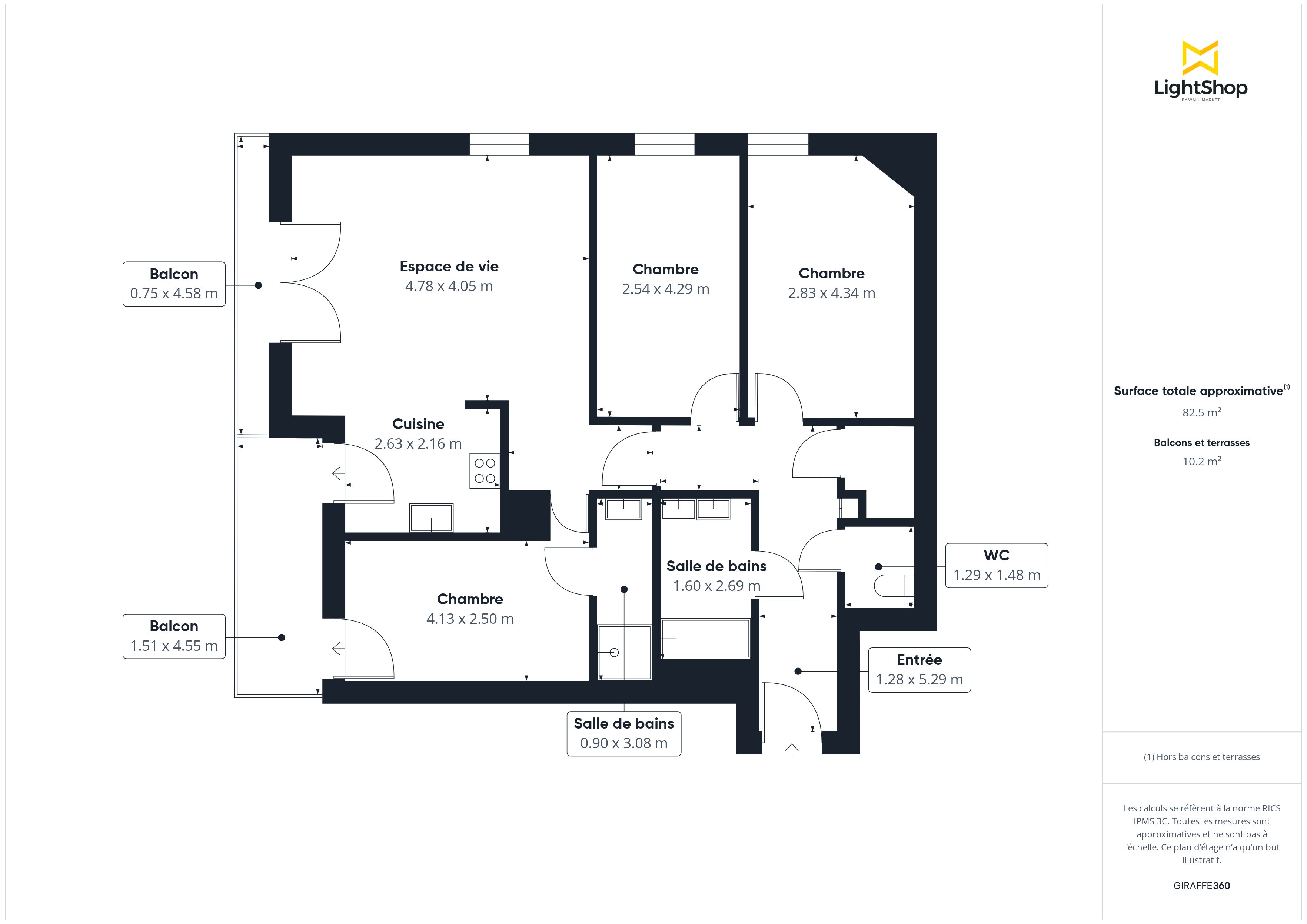 Parvis Pierre de Coubertin, Asnières-sur-Seine - 4 pièces - 83.0 m² - 3 chambres