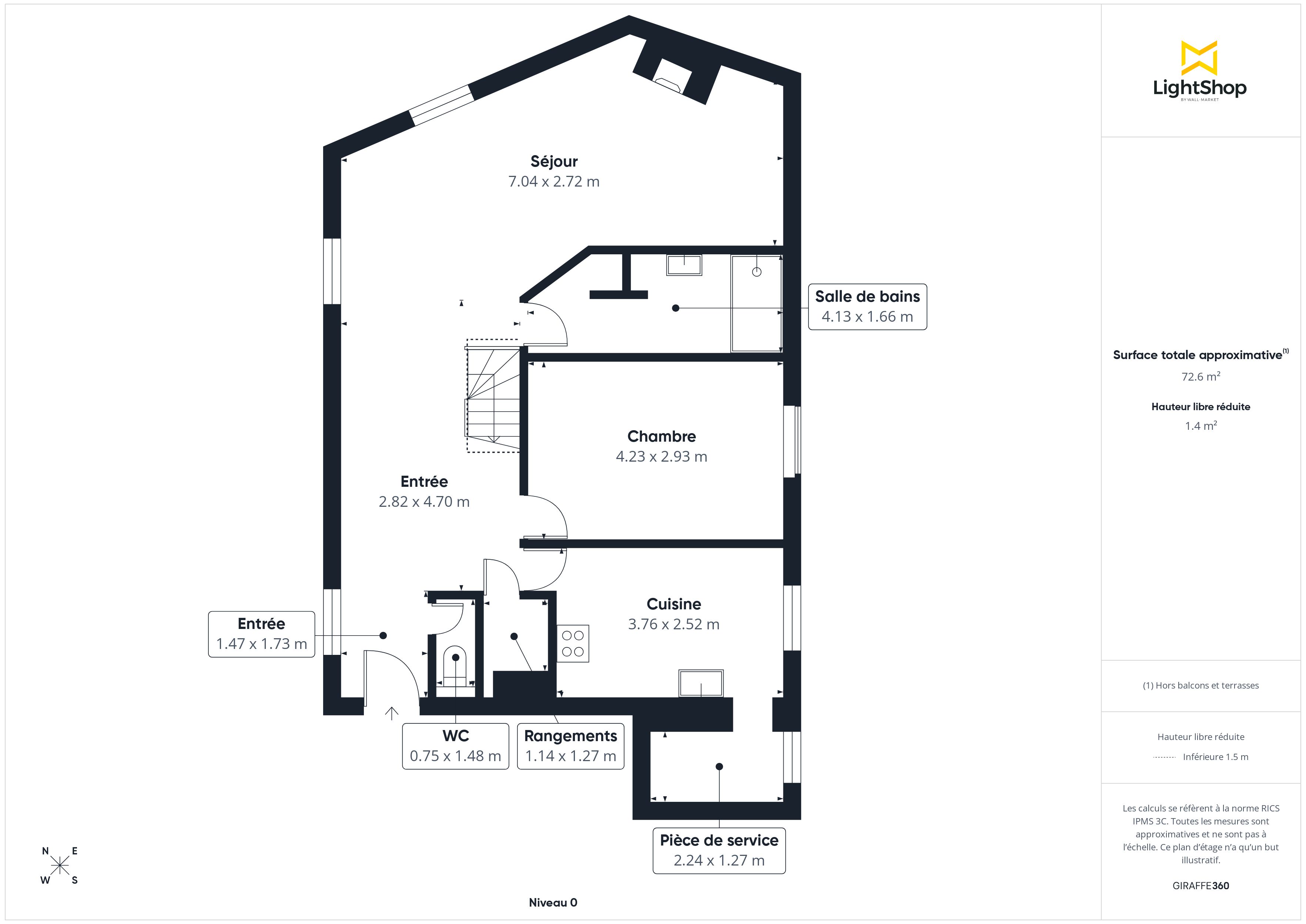 - D’une mezzanine ouverte de 12,5 m² Carrez, 28,5 au sol (possibilité de créer 2 chambres)