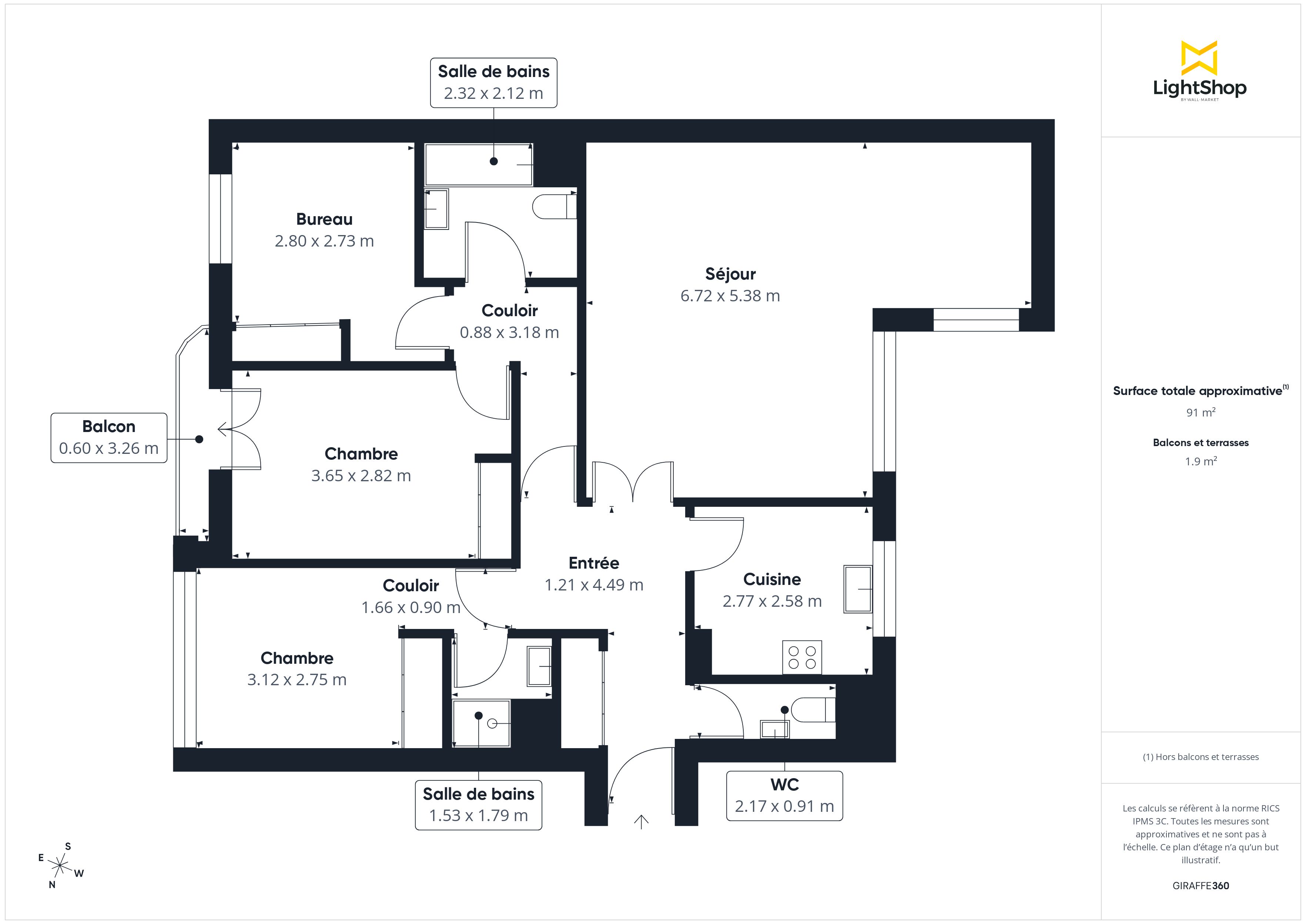 Il se compose de 5 pièces dont 3 chambres, d’une cuisine intégrée Schmidt, d’une salle de bain avec WC, d’une salle d’eau et d’un WC séparé. L’agencement est fonctionnel.