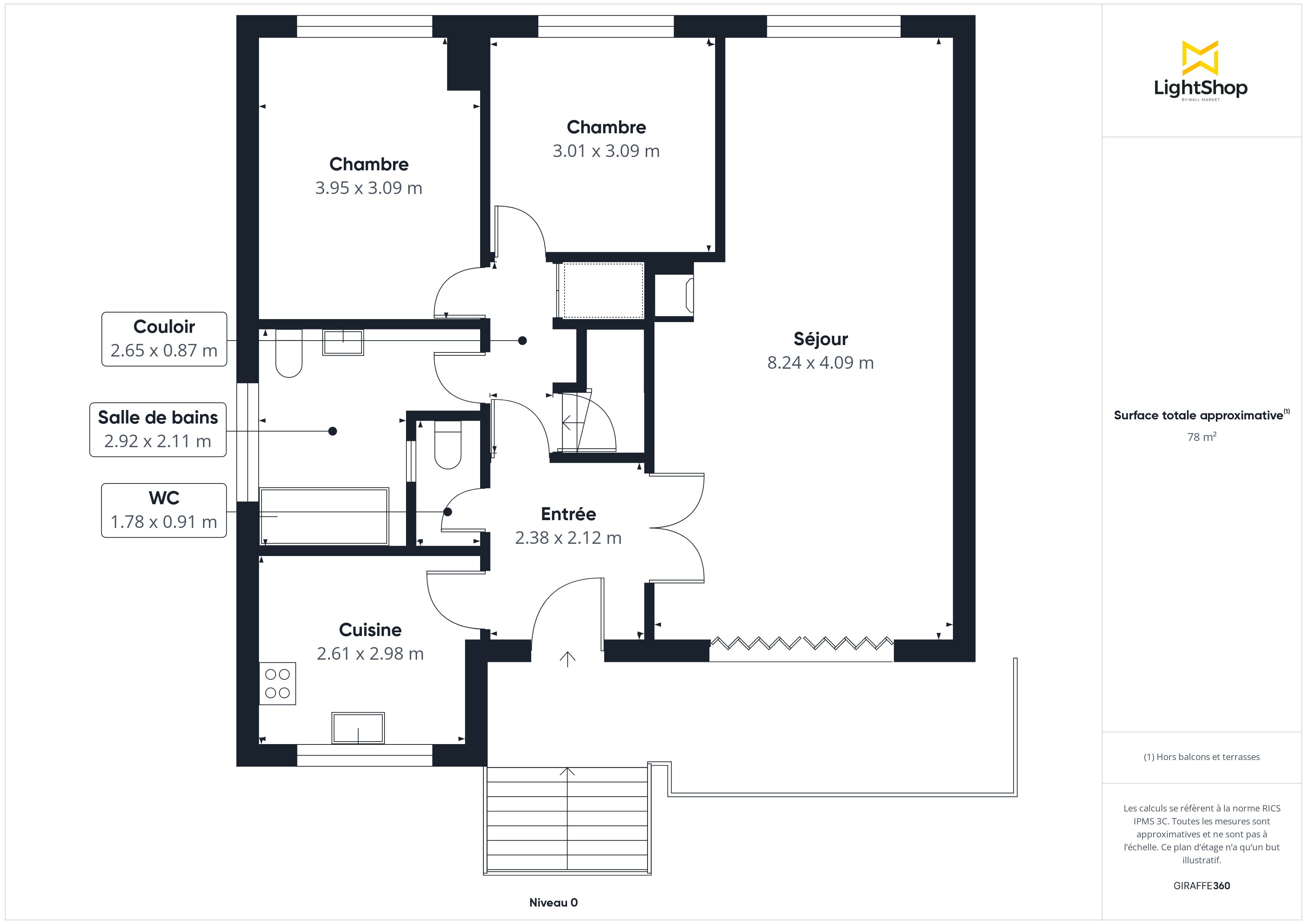 Un Rez-de-chaussée d'environ 78 m² comprenant :